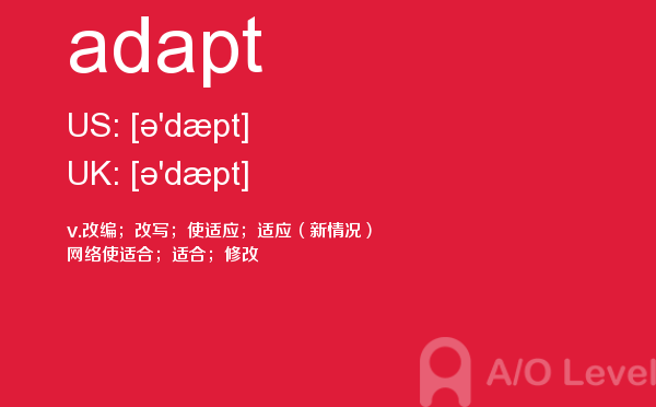 对于a-level考试,我们一再强调要加强a-level考试真题实战,多做英国a-level考试真题。放松一下,跟着a/o-level考试网来积累一下a-level考试中你会用到的单词adapt,对你的a-level考试会有很大的帮助。如果您想了解alevel经济真题及答案,新加坡读a水准,英国alevel中文,alevel培训学校等关于a-level考试的相关资讯,请继续浏览并关注课窝a/o-level考试网。