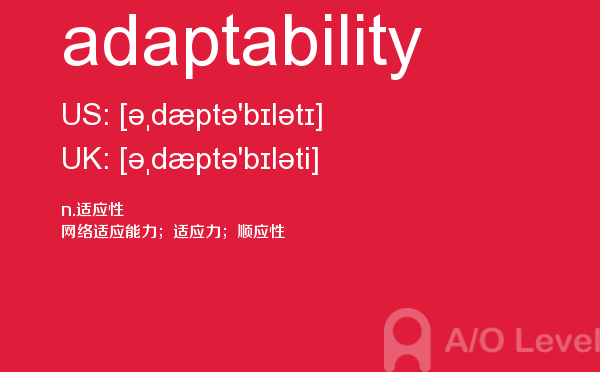 虽然英国a-level院校招生官常把“成绩不是决定录取与否的唯一因素”挂在嘴边,但不得不承认,a-level分数是学生优秀与否的有力证据,取得a-level成绩高分是肯定是优先考虑的。放松一下,先跟着a/o-level考试网来看看今天小编带来的是a-level单词adaptability的介绍。如果您想了解alevel培训价格,新加坡alevel,alevel化学提纲,alevel国际高中课程等关于a-level考试的相关资讯,请继续浏览并关注课窝a/o-level考试网。