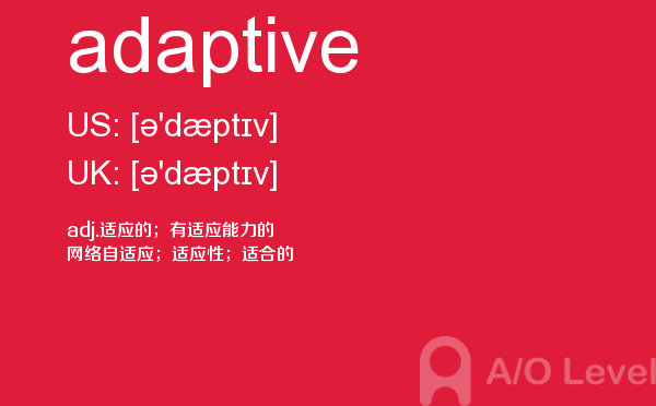 英国高中课程(a-level)的学制为两年:第一年称为as水准,学生通常选择自己最擅长且最有兴趣的3—4门课,通过考试后获得as证书。第二年称为a2水准,学生可选择as水准中优秀的3门课继续学习,通过考试后获得a-level证书。关于a-level学制相信大家肯定有一定的了解,今天alevel考试网想要带大家了解的并不是a-level学制的问题,想要介绍的是a-level重难点单词adaptive,希望对大家有帮助。如果您想了解alevel培训中心,英国alevel排名,alevel历年真题,alevel官方网站等关于a-level考试的相关资讯,请继续浏览并关注课窝a/o-level考试网。