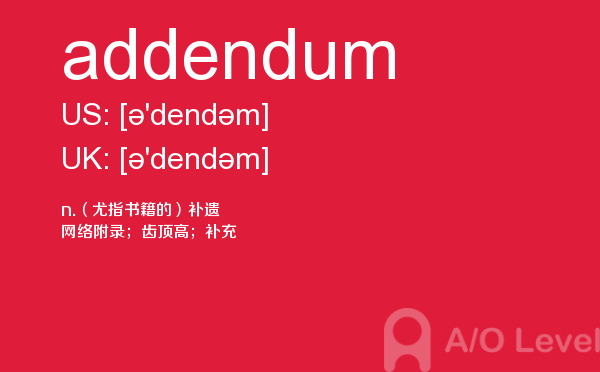 a-level 的考试将由所属的考试委员会分别于每年5-6月和10-11月在全球统一组织,成绩分别在8月和次年2月公布。关于a-level考试时间的具体内容,alevel考试网前面详细介绍过,大家可以查找alevel考试网前面的a-level考试资讯,alevel考试网每天会更新大量的alevel考试资讯,本篇要给大家介绍a-level单词addendum的全面介绍。如果您想了解alevel报名考试,alevel水平考试,墨尔本大学alevel,a水准h1和h2等关于a-level考试的相关资讯,请继续浏览并关注课窝a/o-level考试网。