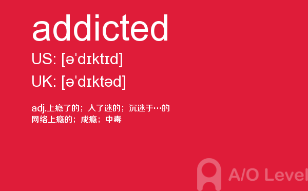 就读于国内学校的学生, 在申请英国学校时需要提交英国a-level考试成绩。很多考生因此英国a-level考试搞得头疼,放松一下,跟着a/o-level考试网来看看英国留学资讯吧!今天课窝a/o-level考试网小编给大家带来a-level考试重点词汇addicted的全解,对你肯定有帮助。如果您想了解中国alevel人数,alevel考试卷,alevel考试日期,国内alevel培训班等关于a-level考试的相关资讯,请继续浏览并关注课窝a/o-level考试网。
