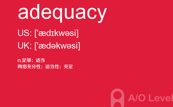 英国a-level考试是英国留学生去英国留学需要参加的考试,很多考生担心a-level考试分数要求高,英国a-level考试难度大,别担心,只要认真的学习a-level考试内容,小编相信大家一定能够考得a-level高分。今天a/o-level考试网给大家带来单词adequacy的全面解析。如果您想了解alevel报名截止日期,alevel美术课程,alevel可以申请哪里,alevel中学等关于a-level考试的相关资讯,请继续浏览并关注课窝a/o-level考试网。