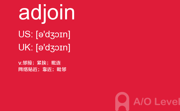 目前,a/olevel逐渐为人所熟知,很多学生都会主动了解alevel考试流程。同时也会抱怨a-level英语题比较难,任务重。那现在我们就放松一下,跟着a/o-level考试网小编来看看a-level考试中要积累的单词adjoin,认真的学习积累。如果您想了解alevel非全日制培训,新加坡a水准好考吗,爱德思alevel中国官网,爱德斯alevel等关于a-level考试的相关资讯,请继续浏览并关注课窝a/o-level考试网。