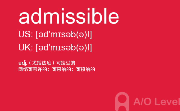 a-level考试报名须知是必须要懂得,这样在面对英国a-level入学考试的时候自己也知道应该怎么面对。为了提高考生们的a-level模拟考卷成绩,a/o-level考试网会经常给大家带来a-level考试资讯,下面就是今天课窝a/o-level考试网小编给大家讲解关于a-level考试词汇admissible怎么用。如果您想了解alevel学校什么时候招生,alevel数学词汇,alevel申请成绩,a水准报名时间地点费用等关于a-level考试的相关资讯,请继续浏览并关注课窝a/o-level考试网。
