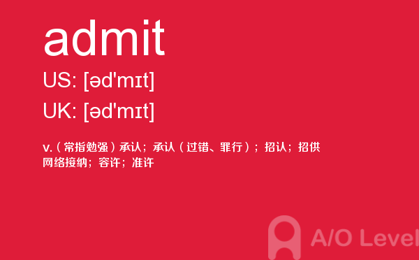 就读于国内学校的学生, 在申请英国学校时需要提交英国a-level考试成绩。很多考生因此英国a-level考试搞得头疼,放松一下,跟着a/o-level考试网来看看英国留学资讯吧!今天课窝a/o-level考试网小编给大家带来a-level考试重点词汇admit的全解,对你肯定有帮助。如果您想了解alevel培训价格,alevel范文,alevel学费一般多少,alevel化学词汇等关于a-level考试的相关资讯,请继续浏览并关注课窝a/o-level考试网。