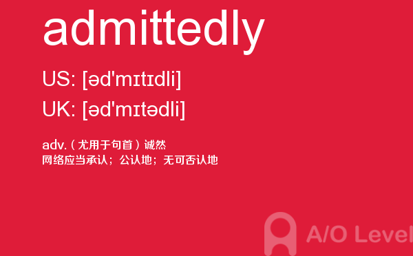 a-level词汇量受到的关注越来越高,很多家长担心a-level考试培训费用,a-level考试录取竞争会不会越来越激烈?这些问题在课窝a/o-level考试网小编都会给大家带来详细介绍,今天a/o-level考试网小编给大家带来的是在a-level考试中的重点词汇admittedly的详细介绍。如果您想了解上海alevel培训班,上海alevel培训机构,新加坡a水准考试时间,新加坡大使馆a水准考试等关于a-level考试的相关资讯,请继续浏览并关注课窝a/o-level考试网。