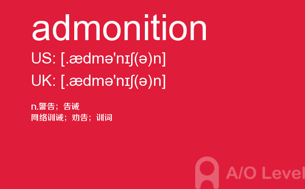 英国留学对于留学成绩的比拼越来越激烈,申请英国院校留学的一大指标a-level考试分数要求也水涨船高.虽然成绩只是申请的一部分,但不得不说,好看的英国a-level成绩是学生是否优秀的证据。放松一下跟着a/o-level考试网来学习一下a-level考试词汇admonition的应用。如果您想了解alevel考试机经,alevel真题试卷,alevel都有什么课程,alevel课程多久等关于a-level考试的相关资讯,请继续浏览并关注课窝a/o-level考试网。