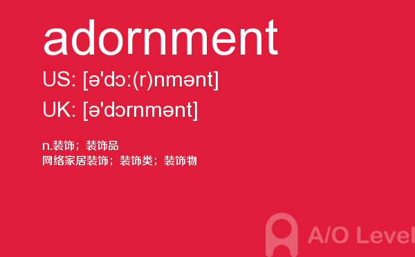 a-level课程适用于年龄在15—18之间,初中毕业以上的在校中学生或具有同等学历的职高生,通常国内a-level学校招收的是高二毕业的学生,并要求参加相关的入学考试,由于a-level课程包括教学及试卷习题等都是英文形式出现,所以这要求学生有较高的英文水平。对于a-level考试适用对象有初步了解之后,下面alevel考试网给大家带来的alevel考试中你需要重点记住的单词adornment的详细介绍。如果您想了解alevel数学评分,alevel物理考试难度,alevel培训中心,新加坡a水准考试试题等关于a-level考试的相关资讯,请继续浏览并关注课窝a/o-level考试网。