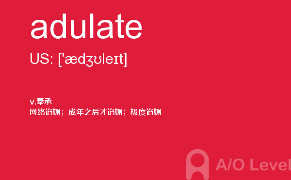 英国的大多数中学开设的alevel课程科目相当广泛,有文科、商科、经济、语言、数学、理科、计算、法律、媒体、音乐等。学生的alevel考试成绩及其所选修的a-level课程在很大程度上决定着能否进入理想的大学和学习所选择的学位课程。关于alevel考试alevel考试网会给大家带来和a-level考试相关的资讯,下面带来的是单词adulate的介绍,会对大家的a-level考试成绩有帮助。如果您想了解alevel课程怎么申请,上海alevel中心,中国alevel就读人数,加拿大大学接受alevel吗等关于a-level考试的相关资讯,请继续浏览并关注课窝a/o-level考试网。