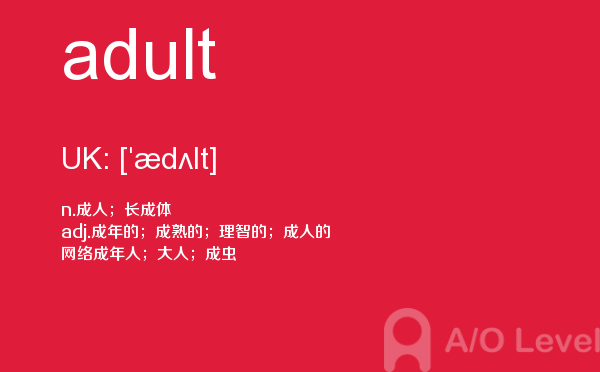 随着英国留学申请竞争的白热化,a-level成绩在学生个人简历中扮演的“入场券”角色,变得越来越重要。然而,在你参加a-level考试培训班前,你首先要对a-level考试有着一定的了解,一起跟着a/o-level考试网来看看小编今天带来a-level单词adult的详细介绍。如果您想了解alevel是什么,alevel面试,alevel去哪考试在中国,alevel成绩等关于a-level考试的相关资讯,请继续浏览并关注课窝a/o-level考试网。