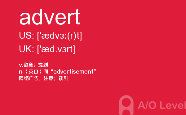 众多周知的英国a-level入学考试是进入英国院校的必经之路,所以我们自然不能小看,建议同学们能够加强a-level考试真题的练习,提前明确英国a-level考试报名的具体信息。为了提高考生们的英国a-level考试成绩,a/o-level考试网小编会每天给大家更新a-level留学资讯和alevel考试资讯,今天带来的是关于a-level考试词汇的单词全解,下面带你学习advert的用法。如果您想了解化学alevel2018,alevel物理大纲,新加坡a水准考试难吗,alevel词汇等关于a-level考试的相关资讯,请继续浏览并关注课窝a/o-level考试网。