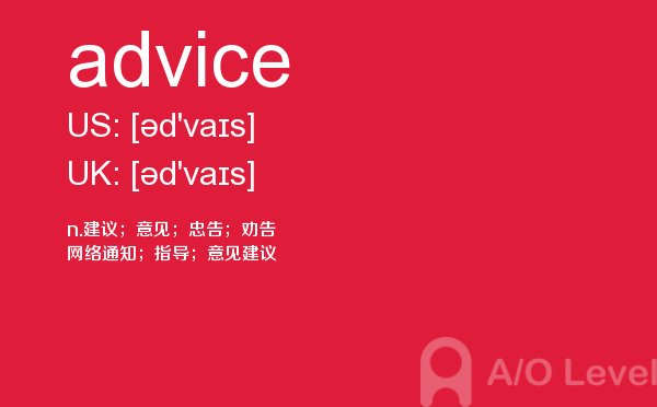 在a-level备考的过程中,想要冲刺到a-level写作的高分,相信大家都应该会知道,除了需要掌握a-level写作的一些技巧之外,优化文章中的词汇和句型也是冲刺高分的关键所在。也就是说,只有充分掌握了语法知识,才能让我们的的文章更为丰富形象。除了a-level写作,在a-level其他方面同学们也需要了解,下面课窝a/o-level考试网小编给大家带来a-level单词advice的介绍。如果您想了解alevel考试的考生年龄上限是多少,alevel国际学校,alevel剑桥,alevel物理讲义等关于a-level考试的相关资讯,请继续浏览并关注课窝a/o-level考试网。