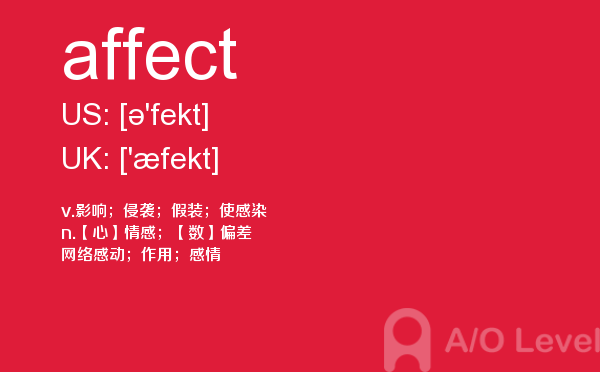 a-level的成绩分为a、b、c、d、e、u六个等级,a为最优,e为通过,u为不及格。如果学生对某门课的成绩不满意,可以选择重考,最终成绩以最好的一次为准。那么a-level考试想要取得a-level高分大家需要做到哪些呢?a/o-level考试网给大家带来的很多a-level考试经验,alevel考试技巧等等,想要考好a-level考试,不仅要知道这些,对于关于a-level考试的所有资讯都需要了解,最重点的是a-level词汇量的积累,今天a/o-level考试网就给大家带来的a-level的考试单词affect的全面解析。如果您想了解alevel化学提纲,alevel经济学问题,alevel真题试卷,怎么去英国读alevel课程等关于a-level考试的相关资讯,请继续浏览并关注课窝a/o-level考试网。
