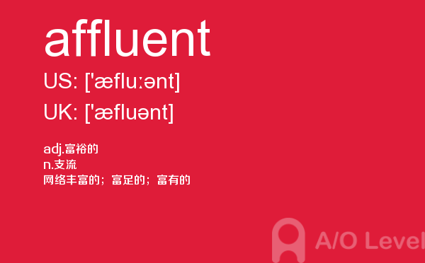 众多周知的英国a-level入学考试是进入英国院校的必经之路,所以我们自然不能小看,建议同学们能够加强a-level考试真题的练习,提前明确英国a-level考试报名的具体信息。为了提高考生们的英国a-level考试成绩,a/o-level考试网小编会每天给大家更新a-level留学资讯和alevel考试资讯,今天带来的是关于a-level考试词汇的单词全解,下面带你学习affluent的用法。如果您想了解化学alevel2018,alevel物理大纲,新加坡a水准考试难吗,alevel词汇等关于a-level考试的相关资讯,请继续浏览并关注课窝a/o-level考试网。