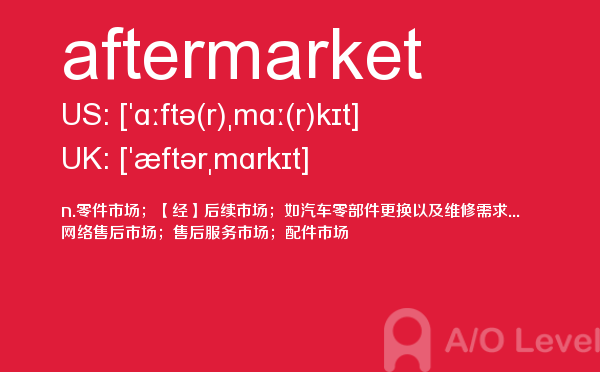 a- level课程一般在中国开设数学、进阶数学(或称高等数学)、物理、计算机学、会计学、商业学、经济学等课程供学生选择。那么关于alevel考生应该选哪些alevel课程呢?以后会给大家详细介绍,今天a/o-level考试网主要给大家全面介绍a-level词汇中的aftermarket单词。如果您想了解新加坡a水准难度,alevel化学还原氧化知识点,爱德思alevel申请大学,悉尼大学alevel要求等关于a-level考试的相关资讯,请继续浏览并关注课窝a/o-level考试网。
