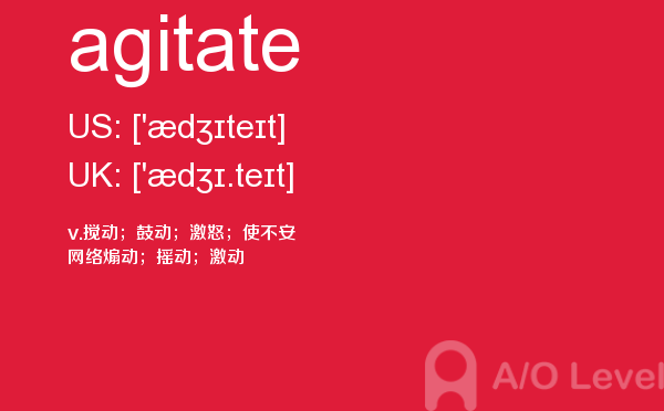 就读于国内学校的学生, 在申请英国学校时需要提交英国a-level考试成绩。很多考生因此英国a-level考试搞得头疼,放松一下,跟着a/o-level考试网来看看英国留学资讯吧!今天课窝a/o-level考试网小编给大家带来a-level考试重点词汇agitate的全解,对你肯定有帮助。如果您想了解alevel预测,alevel考试培训,alevel中学,alevel中文考试等关于a-level考试的相关资讯,请继续浏览并关注课窝a/o-level考试网。