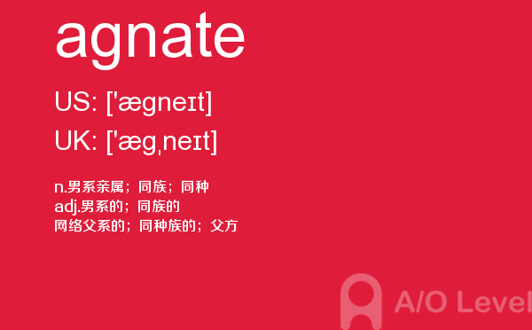 a-level 的考试将由所属的考试委员会分别于每年5-6月和10-11月在全球统一组织,成绩分别在8月和次年2月公布。关于a-level考试时间的具体内容,alevel考试网前面详细介绍过,大家可以查找alevel考试网前面的a-level考试资讯,alevel考试网每天会更新大量的alevel考试资讯,本篇要给大家介绍a-level单词agnate的全面介绍。如果您想了解alevel报名考试,alevel水平考试,墨尔本大学alevel,a水准h1和h2等关于a-level考试的相关资讯,请继续浏览并关注课窝a/o-level考试网。
