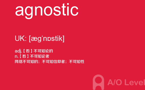 英国a-level学校,从教学质量上来看私立学校更占优势,大部分中国留学生也选择私立学校来读,不过一般都是提前一年来申请学校。中国目前也有20几所a-level学校,每年也同样有走进剑桥牛津等世界顶级大学的学生。所以在国外和在国内都可以选择a-level学校来学习。在前面关于a-level选校的问题已经详细介绍过,那么今天a/o-level考试网小编主要想介绍的是a-level重难点词汇agnostic。希望对大家有帮助。如果您想了解alevel数学包括什么,上海alevel中心,alevel国外考试,a水准等关于a-level考试的相关资讯,请继续浏览并关注课窝a/o-level考试网。