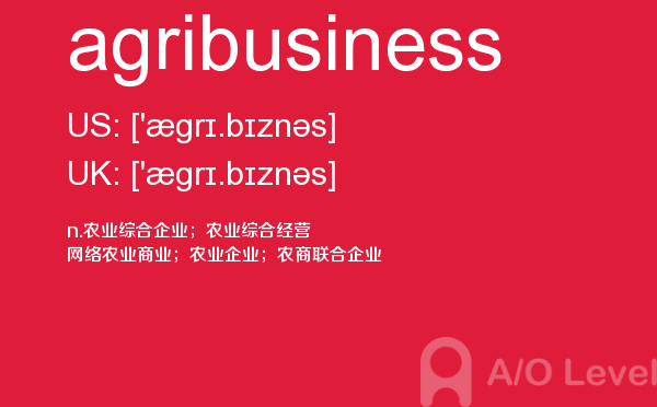 英国高中课程(a-level)的学制为两年:第一年称为as水准,学生通常选择自己最擅长且最有兴趣的3—4门课,通过考试后获得as证书。第二年称为a2水准,学生可选择as水准中优秀的3门课继续学习,通过考试后获得a-level证书。关于a-level学制相信大家肯定有一定的了解,今天alevel考试网想要带大家了解的并不是a-level学制的问题,想要介绍的是a-level重难点单词agribusiness,希望对大家有帮助。如果您想了解了解alevel辅导,alevel澳洲,爱德思alevel真题,alevel物理等关于a-level考试的相关资讯,请继续浏览并关注课窝a/o-level考试网。