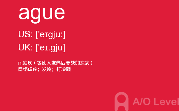 英国高中课程(a-level)的学制为两年:第一年称为as水准,学生通常选择自己最擅长且最有兴趣的3—4门课,通过考试后获得as证书。第二年称为a2水准,学生可选择as水准中优秀的3门课继续学习,通过考试后获得a-level证书。关于a-level学制相信大家肯定有一定的了解,今天alevel考试网想要带大家了解的并不是a-level学制的问题,想要介绍的是a-level重难点单词ague,希望对大家有帮助。如果您想了解alevel课程选课,考alevel多少钱,上海alevel辅导哪家好,alevel经济考试原题等关于a-level考试的相关资讯,请继续浏览并关注课窝a/o-level考试网。