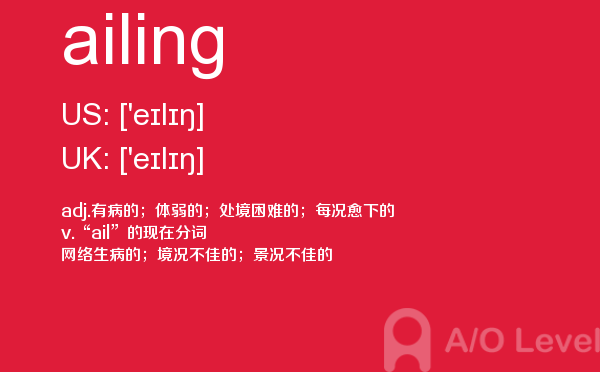 就读于国内学校的学生, 在申请英国学校时需要提交英国a-level考试成绩。很多考生因此英国a-level考试搞得头疼,放松一下,跟着a/o-level考试网来看看英国留学资讯吧!今天课窝a/o-level考试网小编给大家带来a-level考试重点词汇ailing的全解,对你肯定有帮助。如果您想了解alevel化学难不难,爱德思alevel考试时间,申请英国alevel高中,英国alevel官网等关于a-level考试的相关资讯,请继续浏览并关注课窝a/o-level考试网。