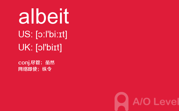 就读于国内学校的学生, 在申请英国学校时需要提交英国a-level考试成绩。很多考生因此英国a-level考试搞得头疼,放松一下,跟着a/o-level考试网来看看英国留学资讯吧!今天课窝a/o-level考试网小编给大家带来a-level考试重点词汇albeit的全解,对你肯定有帮助。如果您想了解为什么要考alevel课程,alevel课程有哪些,英国alevel真的很难吗,新加坡的alevel大纲等关于a-level考试的相关资讯,请继续浏览并关注课窝a/o-level考试网。