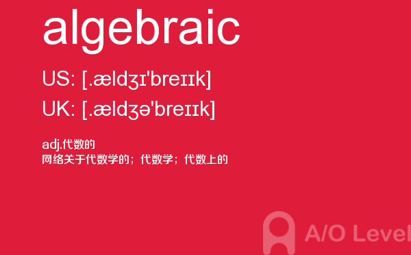英国高中课程(a-level)的学制为两年:第一年称为as水准,学生通常选择自己最擅长且最有兴趣的3—4门课,通过考试后获得as证书。第二年称为a2水准,学生可选择as水准中优秀的3门课继续学习,通过考试后获得a-level证书。关于a-level学制相信大家肯定有一定的了解,今天alevel考试网想要带大家了解的并不是a-level学制的问题,想要介绍的是a-level重难点单词algebraic,希望对大家有帮助。如果您想了解alevel培训中心,英国alevel排名,alevel历年真题,alevel官方网站等关于a-level考试的相关资讯,请继续浏览并关注课窝a/o-level考试网。
