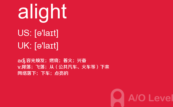众多周知的英国a-level入学考试是进入英国院校的必经之路,所以我们自然不能小看,建议同学们能够加强a-level考试真题的练习,提前明确英国a-level考试报名的具体信息。为了提高考生们的英国a-level考试成绩,a/o-level考试网小编会每天给大家更新a-level留学资讯和alevel考试资讯,今天带来的是关于a-level考试词汇的单词全解,下面带你学习alight的用法。如果您想了解alevel考什么,alevel水平考试,alevel数学包括什么,英国中学排名alevel等关于a-level考试的相关资讯,请继续浏览并关注课窝a/o-level考试网。
