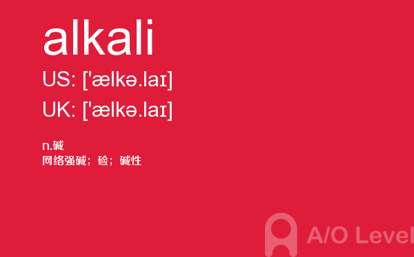 现在申请英国院校的中国孩子非常多,几乎每一个学生都在为一种叫做英国a-level的考试而努力着。a/o-level考试网老师为大家解析a-level考试重难点单词alkali,大家认真学习,会有帮助。如果您想了解alevel物理中文,alevel考试数学试卷,alevel容易拿a的科目,alevel介绍等关于a-level考试的相关资讯,请继续浏览并关注课窝a/o-level考试网。