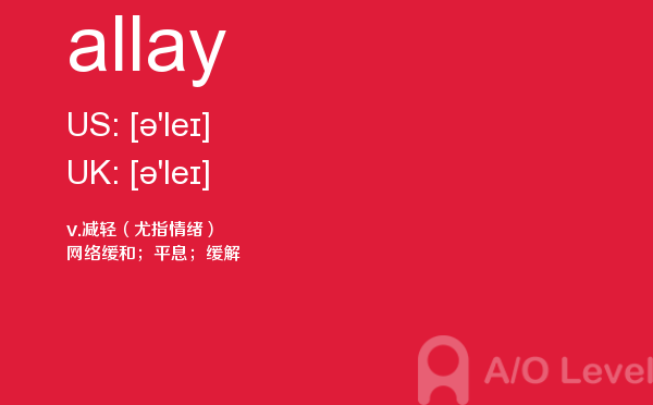 英国a-level考试报名费很好解决,那怎样才能达到a-level考试词汇量要求呢?别再纠结于a-level考试分数要求了,今天我们来一起看看a/o-level考试网今天带给你的a-level单词allay的讲解。如果您想了解英国大学alevel要求,alevel考试指南,新加坡最好的a水准预科学校,alevel化学教材电子版等关于a-level考试的相关资讯,请继续浏览并关注课窝a/o-level考试网。