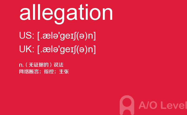 英国的大多数中学开设的alevel课程科目相当广泛,有文科、商科、经济、语言、数学、理科、计算、法律、媒体、音乐等。学生的alevel考试成绩及其所选修的a-level课程在很大程度上决定着能否进入理想的大学和学习所选择的学位课程。关于alevel考试alevel考试网会给大家带来和a-level考试相关的资讯,下面带来的是单词allegation的介绍,会对大家的a-level考试成绩有帮助。如果您想了解alevel艺术学什么,新加坡a水准考试时间,剑桥大学只能alevel吗,alevel中考等关于a-level考试的相关资讯,请继续浏览并关注课窝a/o-level考试网。
