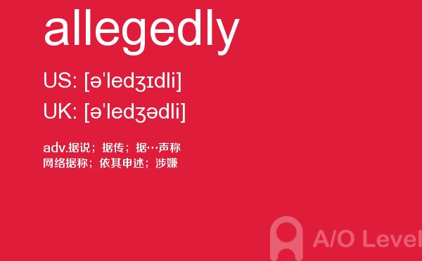 a-level(general certificate of education advanced level ),英国高中课程,是英国全民课程体系,是英国普通中等教育证书考试高级水平课程,也是英国学生的大学入学考试课程。今天alevel考试网小编给大家带来的alevel考试单词allegedly的详细介绍。希望大家能够认真的阅读。如果您想了解高考完新加坡a水准,a水准考试要求,香港大学alevel成绩申请,新加坡a水准等关于a-level考试的相关资讯,请继续浏览并关注课窝a/o-level考试网。
