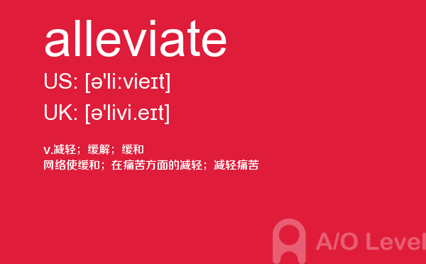 英国留学对于留学成绩的比拼越来越激烈,申请英国院校留学的一大指标a-level考试分数要求也水涨船高.虽然成绩只是申请的一部分,但不得不说,好看的英国a-level成绩是学生是否优秀的证据。放松一下跟着a/o-level考试网来学习一下a-level考试词汇alleviate的应用。如果您想了解高中alevel考试,alevel物理常备词汇,alevel非全日制培训,alevel是毕业考试吗等关于a-level考试的相关资讯,请继续浏览并关注课窝a/o-level考试网。