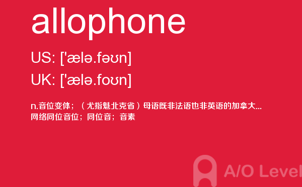 英国高中课程(a-level)的学制为两年:第一年称为as水准,学生通常选择自己最擅长且最有兴趣的3—4门课,通过考试后获得as证书。第二年称为a2水准,学生可选择as水准中优秀的3门课继续学习,通过考试后获得a-level证书。关于a-level学制相信大家肯定有一定的了解,今天alevel考试网想要带大家了解的并不是a-level学制的问题,想要介绍的是a-level重难点单词allophone,希望对大家有帮助。如果您想了解alevel课程选课,考alevel多少钱,上海alevel辅导哪家好,alevel经济考试原题等关于a-level考试的相关资讯,请继续浏览并关注课窝a/o-level考试网。