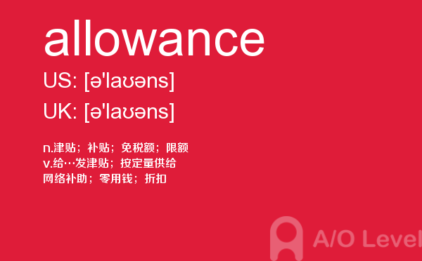 目前,a/olevel逐渐为人所熟知,很多学生都会主动了解alevel考试流程。同时也会抱怨a-level英语题比较难,任务重。那现在我们就放松一下,跟着a/o-level考试网小编来看看a-level考试中要积累的单词allowance,认真的学习积累。如果您想了解alevel物理真题,如何成为alevel老师,英国读alevel,为什么要考alevel课程等关于a-level考试的相关资讯,请继续浏览并关注课窝a/o-level考试网。
