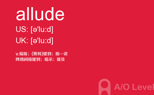 英国a-level学校,从教学质量上来看私立学校更占优势,大部分中国留学生也选择私立学校来读,不过一般都是提前一年来申请学校。中国目前也有20几所a-level学校,每年也同样有走进剑桥牛津等世界顶级大学的学生。所以在国外和在国内都可以选择a-level学校来学习。在前面关于a-level选校的问题已经详细介绍过,那么今天a/o-level考试网小编主要想介绍的是a-level重难点词汇allude。希望对大家有帮助。如果您想了解alevel官方报名,alevel美术课程,alevel数学难度,alevel高数等关于a-level考试的相关资讯,请继续浏览并关注课窝a/o-level考试网。