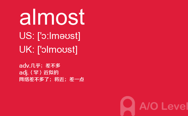英国a-level考试是英国留学生去英国留学需要参加的考试,很多考生担心a-level考试分数要求高,英国a-level考试难度大,别担心,只要认真的学习a-level考试内容,小编相信大家一定能够考得a-level高分。今天a/o-level考试网给大家带来单词almost的全面解析。如果您想了解爱德思alevel答案,a水准成绩,新加坡a水准数学考试,alevel培训费等关于a-level考试的相关资讯,请继续浏览并关注课窝a/o-level考试网。