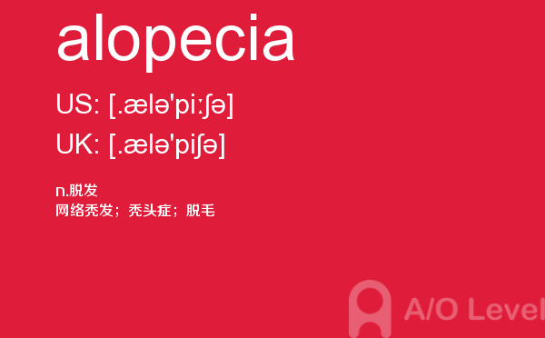 目前,a/olevel逐渐为人所熟知,很多学生都会主动了解alevel考试流程。同时也会抱怨a-level英语题比较难,任务重。那现在我们就放松一下,跟着a/o-level考试网小编来看看a-level考试中要积累的单词alopecia,认真的学习积累。如果您想了解alevel课程培训,alevel阅读评分,剑桥大学alevel,alevel和sat等关于a-level考试的相关资讯,请继续浏览并关注课窝a/o-level考试网。