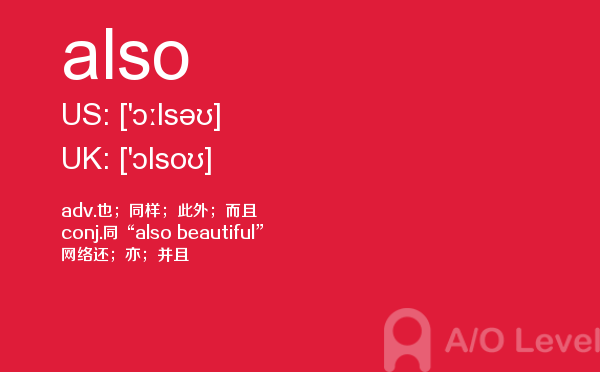 为了有a-level考试高分,很多童靴都参加英国高中课程a-level考试前都会做很多a-level考试真题。a-level考试备考要有一定的方法,课窝a/o-level考试网每天都会给大家带来a-level考试资讯,a-level考试备考相关的内容,今天课窝a/o-level考试网小编给大家带来关于a-level单词also的详细介绍。如果您想了解上海alevel培训学校,澳大利亚alevel,alevel报名截止日期,爱德思alevel考试时间等关于a-level考试的相关资讯,请继续浏览并关注课窝a/o-level考试网。