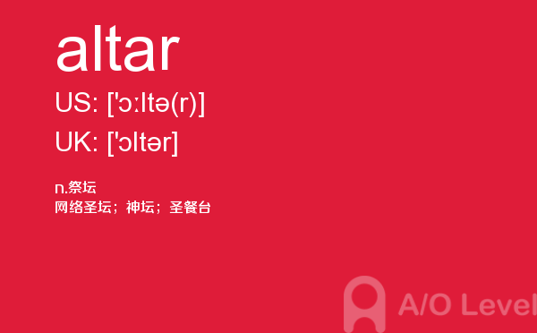 随著学生的素质提升,各大a-level课程培训班的师资和英国a-level题库也不断的完善,近年来学生考出来a-level分数也不断上涨。但是去英国留学,对英国留学资讯和英国的a-level考试资讯都是需要了解的,下面一起跟着a/o-level考试网来看看a-level词汇之altar的详细介绍。如果您想了解在线alevel辅导,alevel时间,alevel写作,alevel化学知识点等关于a-level考试的相关资讯,请继续浏览并关注课窝a/o-level考试网。