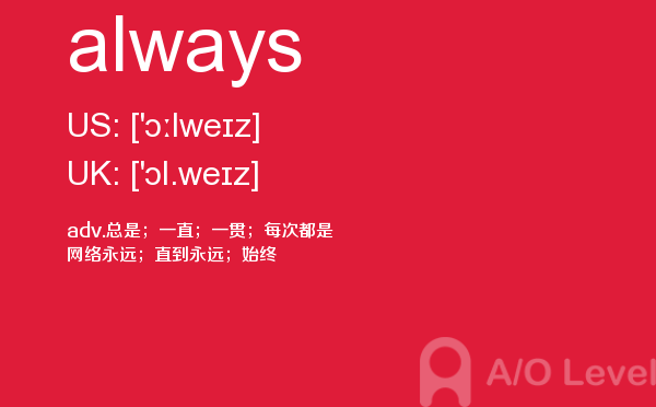 a-level课程包含70多门供学生选择,一般学生选择3至4门来学,中国学生在数学学科上有很大的优势,一般学生都会选择基础数学。学生选择课程时,一般要考虑现在自己的优势科目和将来的发展方向,即你想选择哪个大学、什么专业,从而根据他们的要求有的放矢地选课。关于alevel选课后续会详细介绍,下面带来a-level考试词汇always的详细介绍。如果您想了解alevel国际学校,alevel数学有几本书,英国alevel成绩只有c,alevel考试成绩等关于a-level考试的相关资讯,请继续浏览并关注课窝a/o-level考试网。