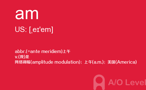 随著学生的素质提升,各大a-level课程培训班的师资和英国a-level题库也不断的完善,近年来学生考出来a-level分数也不断上涨。但是去英国留学,对英国留学资讯和英国的a-level考试资讯都是需要了解的,下面一起跟着a/o-level考试网来看看a-level词汇之am的详细介绍。如果您想了解在线alevel辅导,alevel时间,alevel写作,alevel化学知识点等关于a-level考试的相关资讯,请继续浏览并关注课窝a/o-level考试网。