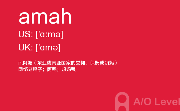 虽然英国a-level院校招生官常把“成绩不是决定录取与否的唯一因素”挂在嘴边,但不得不承认,a-level分数是学生优秀与否的有力证据,取得a-level成绩高分是肯定是优先考虑的。放松一下,先跟着a/o-level考试网来看看今天小编带来的是a-level单词amah的介绍。如果您想了解考alevel有年龄限制吗,alevel课程难吗,新加坡最好的a水准预科学校,上海alevel辅导等关于a-level考试的相关资讯,请继续浏览并关注课窝a/o-level考试网。