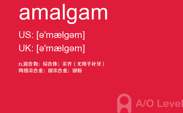 英国a-level入学考试的机会真的很少,每年就5-6月和10-11月两场考试。所以千万别因为不必要的原因,影响了a-level入学考试。为了让大家更好的在英国留学,a/o-level考试网会为大家带来a-level考试相关的资讯,一起来看看a/o-level考试网今天带来的词汇amalgam的解析。如果您想了解alevel新加坡,alevel词汇书,alevel真题答案,alevel课程设置等关于a-level考试的相关资讯,请继续浏览并关注课窝a/o-level考试网。