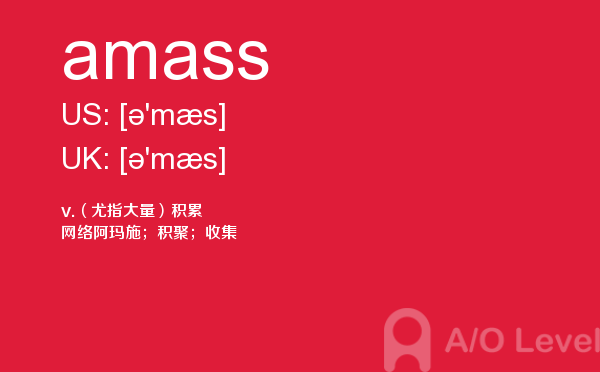 虽然英国a-level院校招生官常把“成绩不是决定录取与否的唯一因素”挂在嘴边,但不得不承认,a-level分数是学生优秀与否的有力证据,取得a-level成绩高分是肯定是优先考虑的。放松一下,先跟着a/o-level考试网来看看今天小编带来的是a-level单词amass的介绍。如果您想了解alevel数学真题下载,alevel教材在哪里买,alevel课程教案,新加坡a水准考试条件等关于a-level考试的相关资讯,请继续浏览并关注课窝a/o-level考试网。