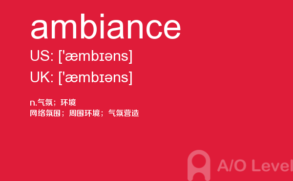 在a-level备考的过程中,想要冲刺到a-level写作的高分,相信大家都应该会知道,除了需要掌握a-level写作的一些技巧之外,优化文章中的词汇和句型也是冲刺高分的关键所在。也就是说,只有充分掌握了语法知识,才能让我们的的文章更为丰富形象。除了a-level写作,在a-level其他方面同学们也需要了解,下面课窝a/o-level考试网小编给大家带来a-level单词ambiance的介绍。如果您想了解alevel物理常备词汇,alevel官方网站,alevel数学公式,alevel培训学费等关于a-level考试的相关资讯,请继续浏览并关注课窝a/o-level考试网。