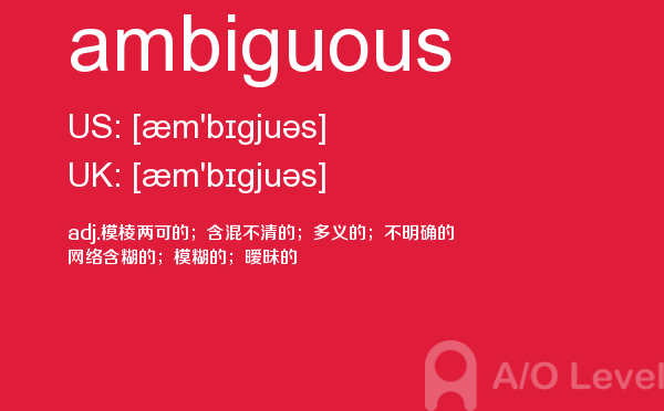 英国a-level考试报名费很好解决,那怎样才能达到a-level考试词汇量要求呢?别再纠结于a-level考试分数要求了,今天我们来一起看看a/o-level考试网今天带给你的a-level单词ambiguous的讲解。如果您想了解alevel课程有年龄限制,爱德思alevel2017真题,alevel化学辅导,a水准考试等关于a-level考试的相关资讯,请继续浏览并关注课窝a/o-level考试网。