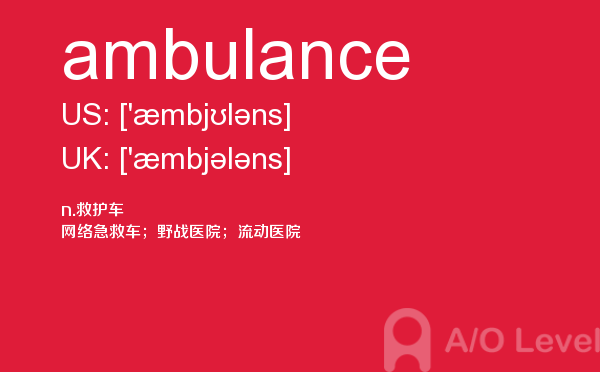目前,a/olevel逐渐为人所熟知,很多学生都会主动了解alevel考试流程。同时也会抱怨a-level英语题比较难,任务重。那现在我们就放松一下,跟着a/o-level考试网小编来看看a-level考试中要积累的单词ambulance,认真的学习积累。如果您想了解alevel是上机的考试形式吗,alevel物理内容,alevel年龄限制,alevel词汇书等关于a-level考试的相关资讯,请继续浏览并关注课窝a/o-level考试网。