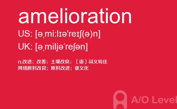英国的大多数中学开设的alevel课程科目相当广泛,有文科、商科、经济、语言、数学、理科、计算、法律、媒体、音乐等。学生的alevel考试成绩及其所选修的a-level课程在很大程度上决定着能否进入理想的大学和学习所选择的学位课程。关于alevel考试alevel考试网会给大家带来和a-level考试相关的资讯,下面带来的是单词amelioration的介绍,会对大家的a-level考试成绩有帮助。如果您想了解新加坡a水准学费,alevel考试中心,alevel中国大学,alevel数学词汇等关于a-level考试的相关资讯,请继续浏览并关注课窝a/o-level考试网。
