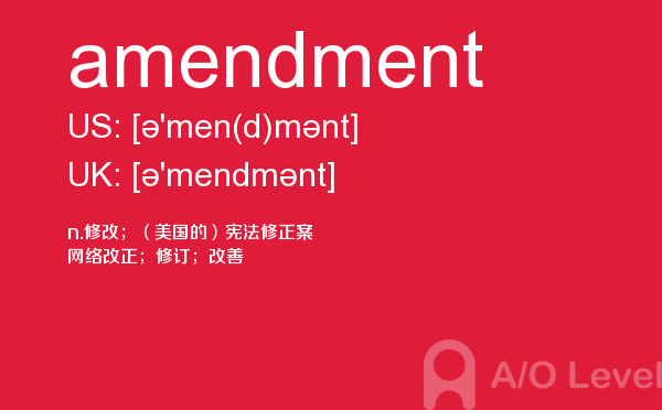 为了有a-level考试高分,很多童靴都参加英国高中课程a-level考试前都会做很多a-level考试真题。a-level考试备考要有一定的方法,课窝a/o-level考试网每天都会给大家带来a-level考试资讯,a-level考试备考相关的内容,今天课窝a/o-level考试网小编给大家带来关于a-level单词amendment的详细介绍。如果您想了解上海alevel培训学校,澳大利亚alevel,alevel报名截止日期,爱德思alevel考试时间等关于a-level考试的相关资讯,请继续浏览并关注课窝a/o-level考试网。